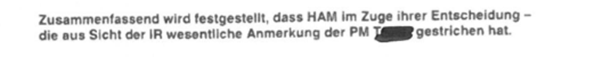 c. Wurde in diesem Zusammenhang auch festgehalten, dass (Fr. Hammerschmid) im Zuge ihrer Entscheidung die aus Sicht der IR wesentliche Anmerkung der PM T. gestrichen hat?