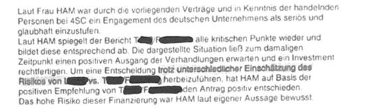 7. Ist es korrekt, dass aus dem Bericht der internen Revision hervorgeht, dass der Entscheidungsvorschlag der Projektmanager eine Bürgschaft zu übernehmen, von der internen Revision als "nicht ganz schlüssig" beurteilt wurde?