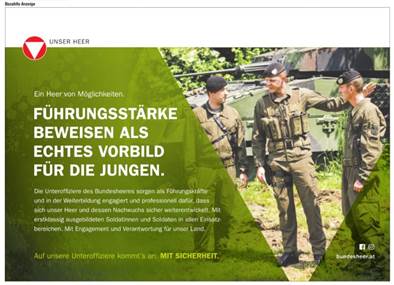 In „Österreich“ vom 24. Februar 2017 ist auf Seite 12 ein Inserat des BMLVS mit dem Titel „Heer von Möglichkeiten“ zu finden.