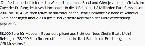 Abbildung 1: Auszug aus einem Artikel der Zeitung Österreich vom 26.01.2017 (abrufbar unter: http://www.österreich.at/politik/Rechnungshof-Museum-statt-U-Bahn-gebaut/266828868)