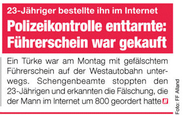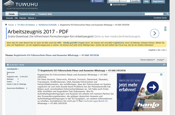 Auf der Homepage von TUWUHU für Studenten[1], unter anderem für jene der TU-Wien, werden registrierte EU-Führerscheine, Pässe und Ausweise illegal zum Erwerb angeboten und offen mit Kontakten zu Einwanderungsdiensten geworben.