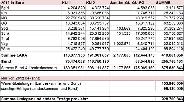 Abbildung 1 - kolportierte Einnahmensituation WKO 2013 bzw. Auszüge aus 2012