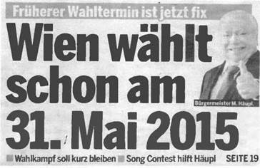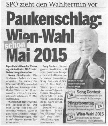 Die Tageszeitung Österreich berichtet in ihrer Ausgabe vom 28. Mai 2014 auf ihrer Titelseite: