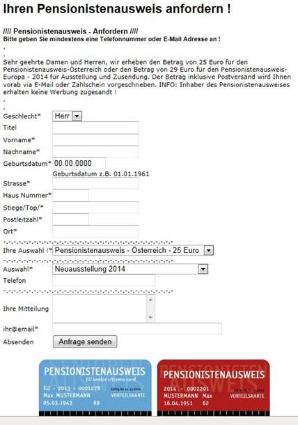 betreffend Pensionistenausweise, die auf dubiosen Seiten zu bestellen sind
