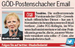 In der Tageszeitung „Österreich“ wurde am 6.12.2013 folgender Artikel betreffend Postenschacher, gefördert durch die FCG im Wissenschaftsministerium, veröffentlicht: