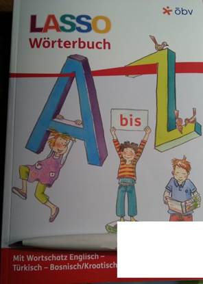 Wie die FPÖ informiert worden ist, wird an Volksschulen das Wörterbuch des Österreichischen Bundesverlages (ÖBV) „Lasso“ eingesetzt. Was auf dem winzig kleinen Bild des Buchcovers auf der ÖBV-Internetseite nicht erkennbar bzw. überhaupt gar nicht sichtbar ist, ist der Zusatz am unteren Rand des Buches „mit Wortschatz Englisch – Türkisch – Bosnisch/Kroatisch/Serbisch“: