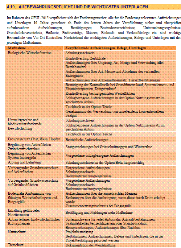 betreffend Aufbewahrungspflicht für Förderungswerber im Rahmen des ÖPUL 2015