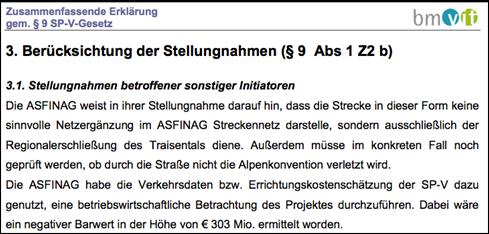 der ASFINAG-Stellungnahme in der Strategischen Prüfung Verkehr, die in der