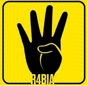„Dieses Symbol der schwarzen Hand mit vier ausgestreckten Fingern und eingeklapptem Daumen auf gelbem Grund und dem Schriftzug „R4BIA“ wurde zum Symbol des Widerstands der Anhänger des gestürzten ägyptischen Präsidenten Mohammed MURSI und der „Bewegung der Muslimbrüder“, die ab dem 28. Juni 2013 auf dem Rabi’a al-Adawiya-Platz in Kairo gegen die Absetzung MURSIs durch das ägyptische Militär und die am 14. August 2013 erfolgte gewaltsame Räumung des Platzes demonstriert hatten.“ (Quelle: Baden-Württemberg / Landesamt für Verfassungsschutz)