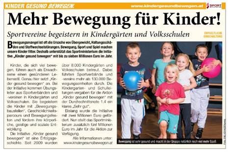 In der Tageszeitung „Heute“ vom 11. Juni 2015 ist auf Seite 23 ein Inserat des BMLVS mit dem Titel „Mehr Bewegung für Kinder!“ zu finden.