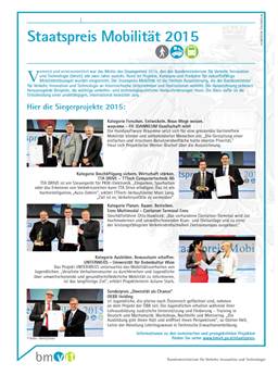 In der Tageszeitung „Krone“ vom 26. Juni 2015 ist auf Seite 21 ein Inserat des BMVIT mit dem Titel „Staatspreis Mobilität 2015“ zu finden.