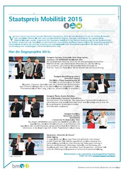In der Tageszeitung „Österreich“ vom 26. Juni 2015 ist auf Seite 35 ein Inserat des BMVIT mit dem Titel „Staatspreis Mobilität 2015“ zu finden.