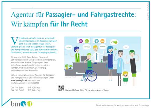 In der Tageszeitung „Österreich“ vom 6. Juli 2015 ist auf Seite 22 ein Inserat des BMVIT mit dem Titel „Agentur für Passagier- und Fahrgastrechte“ zu finden.