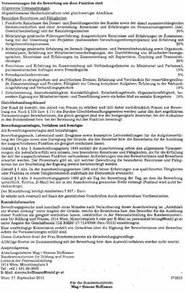 Angesichts dessen legt die og Stellenausschreibung des BMBF den Schluss nahe, dass mit dieser Stelle eine Person aus dem SPÖ-nahen Umfeld der derzeitigen Ressortchefin versorgt werden soll.
