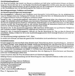 Angesichts dessen legt die og Stellenausschreibung des BMBF den Schluss nahe, dass mit dieser Stelle eine Person aus dem SPÖ-nahen Umfeld der derzeitigen Ressortchefin versorgt werden soll.