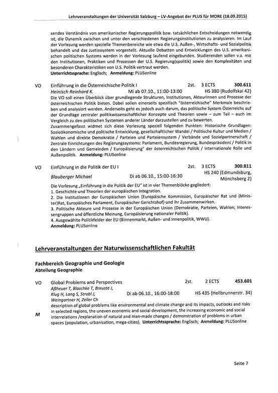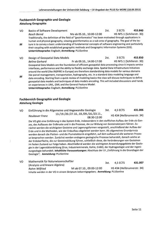 11. Falls nein, gibt es parallel zu den og Lehrveranstaltungen ebensolche Lehrveranstaltungen für ordentliche Hörer der Paris-Lodron-Universität Salzburg?