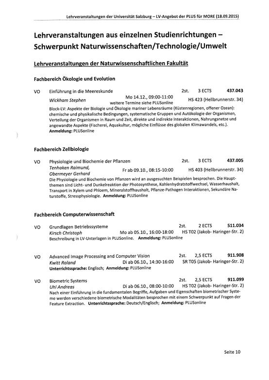 10. Gibt es für diese Lehrveranstaltungen auch Anmeldungen von ordentlichen Hörern der Paris-Lodron-Universität Salzburg?