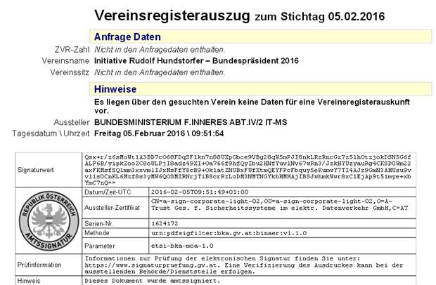 Unter der Adresse Verein „Initiative Rudolf Hundstorfer –