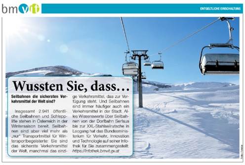In der Gratiszeitung „Heute“ vom 16. Feber 2016 ist auf Seite 9 ein Inserat des BMVIT mit dem Titel „Wussten Sie, dass…“ zu finden.