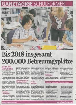 In der Tageszeitung „Österreich“ vom 23. Februar 2014 ist auf Seite 35 ein Inserat des BMUKK mit dem Titel „Ganztägige Schulformen“ zu finden.