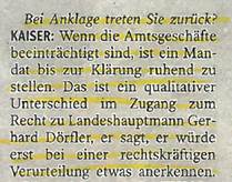 Die Tageszeitung „Kronen Zeitung“ berichtete am 04.02.2016, dass LH Dr. Peter Kaiser erst bei einem „absolut fixen Prozesstermin“ seine Funktion zurücklegen werde.