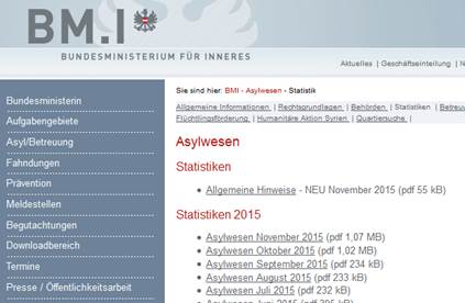 Mit 1. März 2016 war es nicht möglich auf der Homepage des Bundesministeriums für Inneres die Asylstatistik für das Jahr 2015 (beinhaltet in der Asylstatistik Dezember 2015) einzusehen.