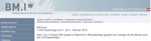 Die seit November 2015 veröffentlichte wöchentliche Asylstatistik auf der Homepage des Bundesministeriums für Inneres wurde mit Bekanntgabe der Zahlen für die erste Februarwoche eingestellt.