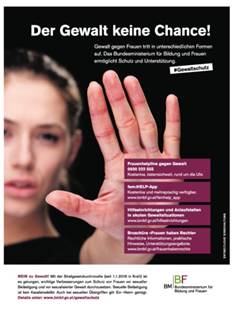 In „Heute“ vom 3. März 2016 ist auf Seite 13 ein Inserat des BMBF mit dem Titel „Der Gewalt keine Chance“ zu finden.