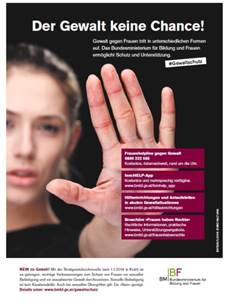 In der „Krone“ vom 13. März 2016 ist auf Seite 21 ein Inserat des BMBF mit dem Titel „Der Gewalt keine Chance“ zu finden.