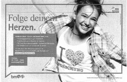 In der Gratiszeitung „Heute“ vom 26. April 2016 ist auf Seite 7 ein Inserat des BMVIT mit dem Titel „Folge deinem Herzen“ zu finden.