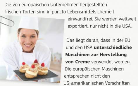 Auf Seite 6 wird über hohe Einfuhrzölle von Waren aus der EU in die USA geklagt. Sie seien ein Verkaufshemmnis für europäische Waren, die durch die Zölle in den USA unverhältnismäßig teuer würden. Welche eigentliche Funktion Ein- und Ausfuhrzölle in der globalen Wirtschaft bei der Sicherung von Arbeitsplätzen und der Förderung der regionalen Wirtschaft haben, wird allerdings nicht thematisiert.