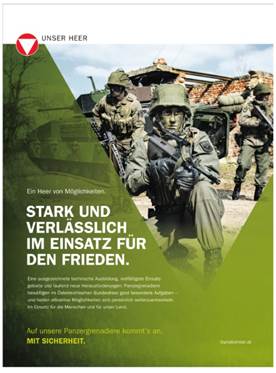 In „Heute“ vom 22. Juni 2016 ist auf Seite 5 ein Inserat des BMLVS mit dem Titel „Unser Heer“ zu finden.