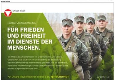 In „Österreich“ vom 24. Juni 2016 ist auf Seite 17 ein Inserat des BMLVS mit dem Titel „Unser Heer“ zu finden.
