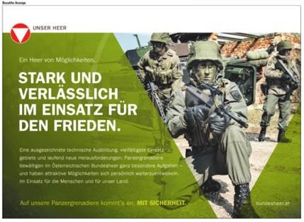 In „Österreich“ vom 28. Juni 2016 ist auf Seite 7 ein Inserat des BMLVS mit dem Titel „Unser Heer“ zu finden.
