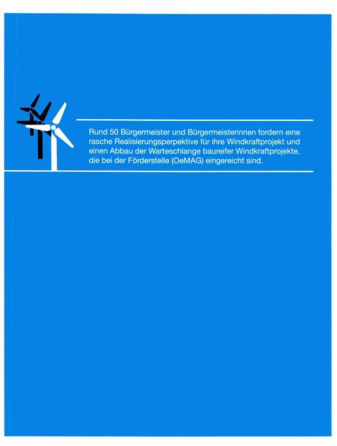 Wir fordern eine rasche Realisierungsperpektive für unsere Windkraftprojekte und einen Abbau der Warteschlange baureifer Windkraftprojekte, die bei der Förderstelle (OeMAG) eingereicht sind
