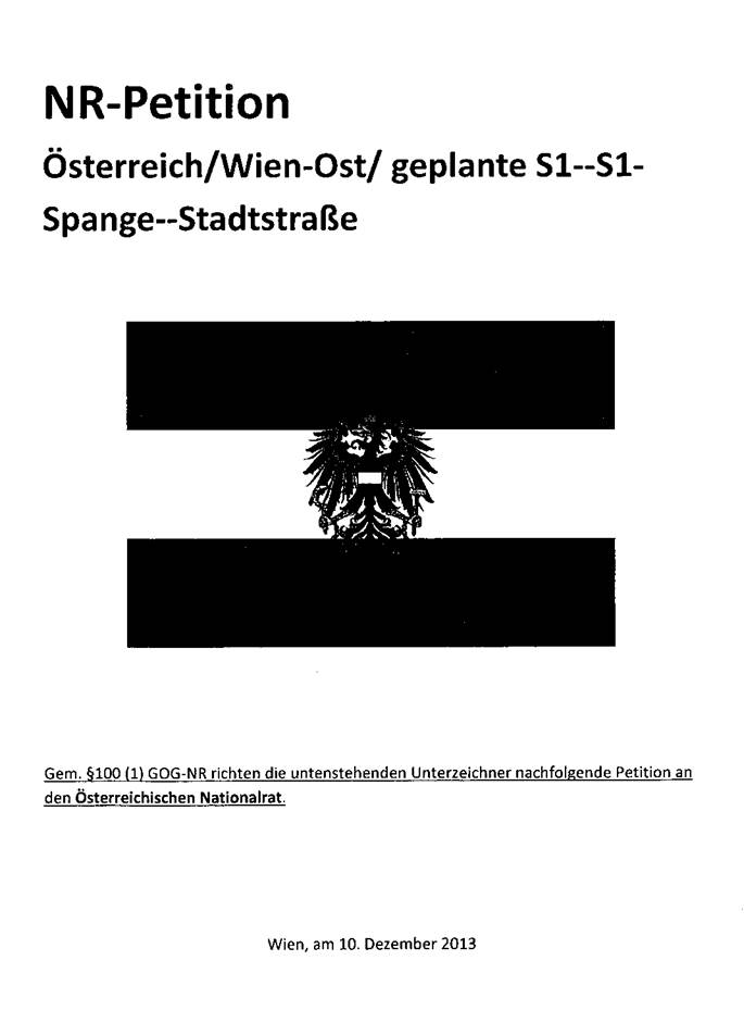 NR-Petition Österreich/Wien-Ost/geplante S1—S1-Spange--Stadtstraße