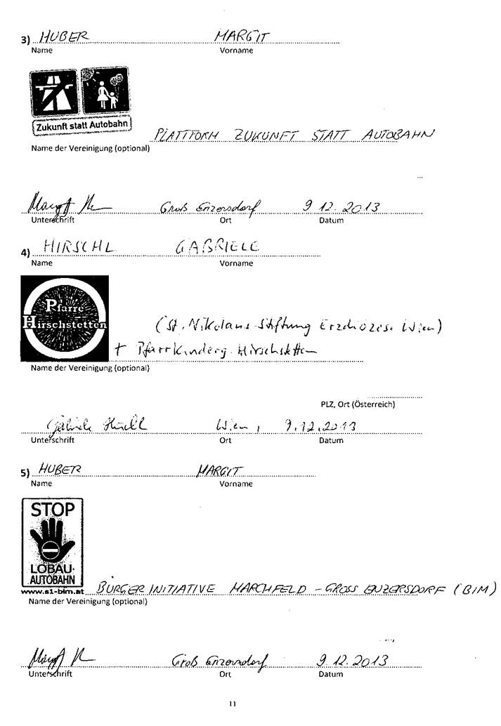Die Unterzeichner fordern daher den Abbruch der Planung der obigen Hochleistungsstraßen-Projekte bei zeitgleicher Ausarbeitung eines zukunftsorientierten, nachhaltigen, gesamtheitlichen Verkehrsmasterplanes für die Wien-Ost-Region, in welchem nachfolgende Punkte Berücksichtigung finden: