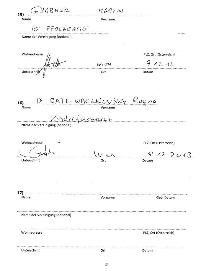 In der Anlage überreiche ich Ihnen gem. §100 (1) GOG-NR die Petition betreffend Österreich