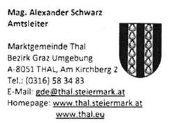 Trotz des Wissens, dass diese Materie schon im Petitionsausschuss des Nationalrates in Behandlung ist, möchte die Marktgemeinde Thal hiermit die im Gemeinderat einstimmig beschlossene Resolution gegen TTIP & TiSA an den Nationalrat übermitteln. Mit der Bitte diese allen Klubs der im Parlament vertretenen Fraktionen zukommen zu lassen.