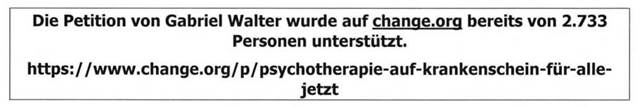 PETITION "PSYCHOTHERAPIE AUF KRANKENSCHEIN FÜR ALLE - JETZT"