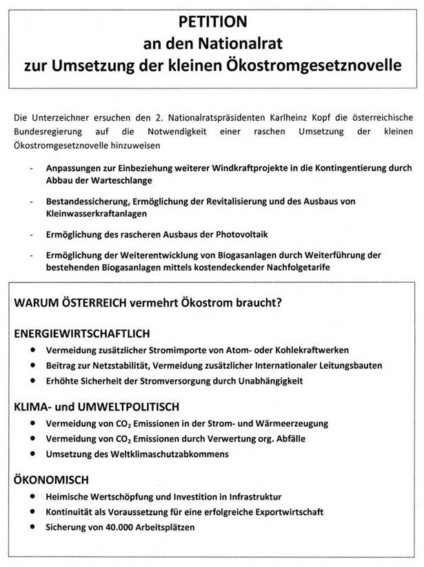 In der Anlage überreiche ich gem. §100 (1) GOG-NR die Petition betreffend