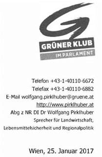 DER GRÜNE KLUB IM PARLAMENT . 1017 WIEN . ÖSTERREICH