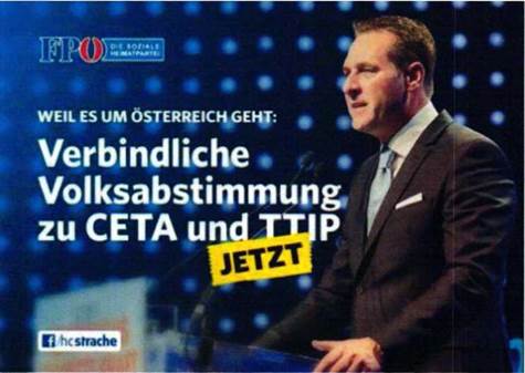 Auf Facebook sprach der nunmehrige Vizekanzler für eine Volksabstimmung zu CETA sogar eine Garantieerklärung der FPÖ aus und ließ die Forderung nach einer solchen auch in ganz Österreich plakatieren.