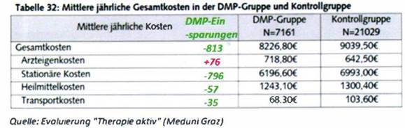 Dass die Einschreibequote im internationalen Vergleich so niedrig ist, liegt nicht daran, dass das Programm schlecht ist. Im Gegenteil, die strukturierte Versorgung bringt laut der Programm-Evaluierung nicht nur bessere Versorgungsergebnisse (bessere Versorgung, weniger Komplikationen), sondern auch hohe jährliche Einsparungen (813 Euro pro Jahr für jeden DMP-Teilnehmer). Das Problem ist nur, dass die Einsparungen fast ausschließlich in den Spitälern anfallen, die von den Ländern (Landesgesundheitsfonds) finanziert werden. Die Kassen, die aber „Therapie aktiv“ organisieren, können froh sein, wenn sie die ambulanten Mehrkosten durch geringe Heilmittelkosten und Transportkosten decken können. Die fehlende „Finanzierung aus einer Hand“ hemmt also höchstwahrscheinlich die Kassen bei der verstärkten Einschreibung in das DMP. Die Schlusslichtposition bei der strukturierten Versorgung ist somit definitiv hausgemacht, weil seit Jahrzehnten bei einer Reform zur "Finanzierung aus einer Hand" geblockt wird.