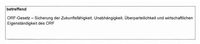 Die Österreichische Bundesregierung und die österreichischen Parlamentsparteien werden aufgefordert, die Zukunftsfähigkeit, Unabhängigkeit, Überparteilichkeit und wirtschaftliche Eigenständigkeit des ORF bei der Neufassung des ORF-Gesetzes und der Finanzierung und Neustrukturierung des ORF zu gewährleisten.