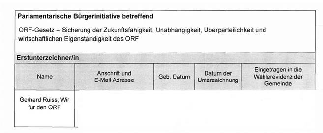 Die Medien-Enquete der Regierung hat zwar das Bekenntnis zu einem starken ORF und eigenständigen österreichischen Medienstandort gebracht, Medien- und Meinungsfreiheit und Qualitätsfragen blieben aber weitgehend unthematisiert. Mit der Parlamentarischen Bürgerinitiative „Zur Sicherung der Zukunftsfähigkeit, Unabhängigkeit, Überparteilichkeit und wirtschaftlichen Eigenständigkeit des ORF“ soll die Aufmerksamkeit besonders auf diese Themenstellungen gelenkt werden.