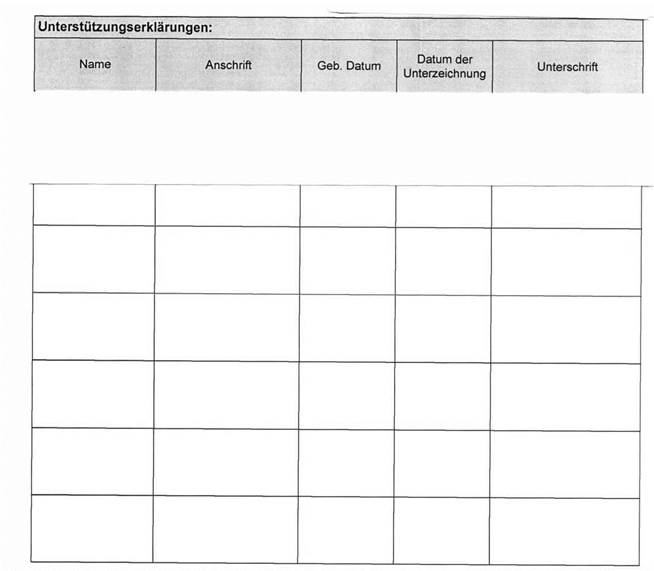 Unterschrift unterstützt. (Anm.: zumindest 500 rechtsgültige Unterschriften müssen für die Einbringung im Nationalrat vorliegen.)