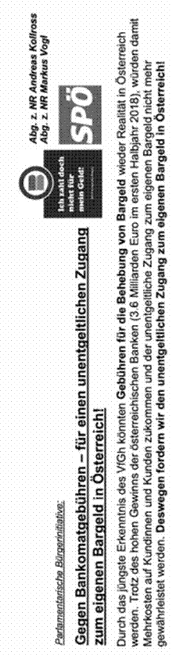 betreffend Gegen Bankomatgebühren – für einen unentgeltlichen Zugang zum eigenen Bargeld in Österreich! |