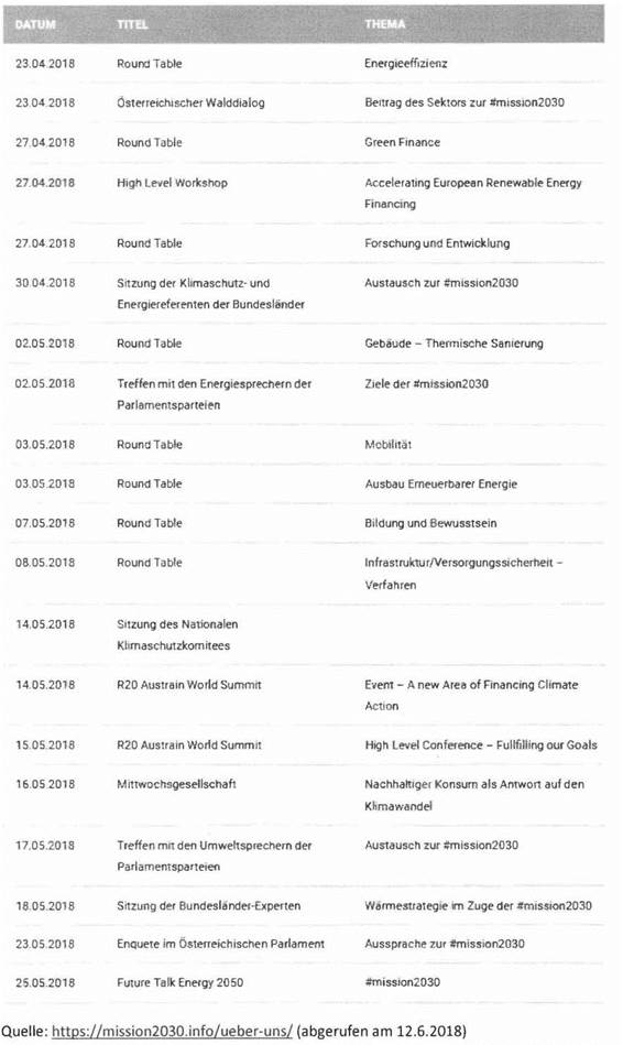 Auf der Website mission2030.info werden zwar Termine dargestellt, wer daran teilgenommen hat und welche Erkenntnisse aus diesen Terminen hervorgingen, bleibt aber offen.