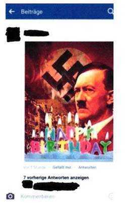 Auch das gepostete Foto von Adolf Hitler mit dem nationalsozialistischen Hakenkreuz und dem Glückwünsch „HAPPY BIRTHDAY“ ist eine nationalsozialistische Wiederbetätigung. Eine verabscheuungswürdige Glorifizierung von Hitler, eigentlich ein Klassiker im Schulunterricht.